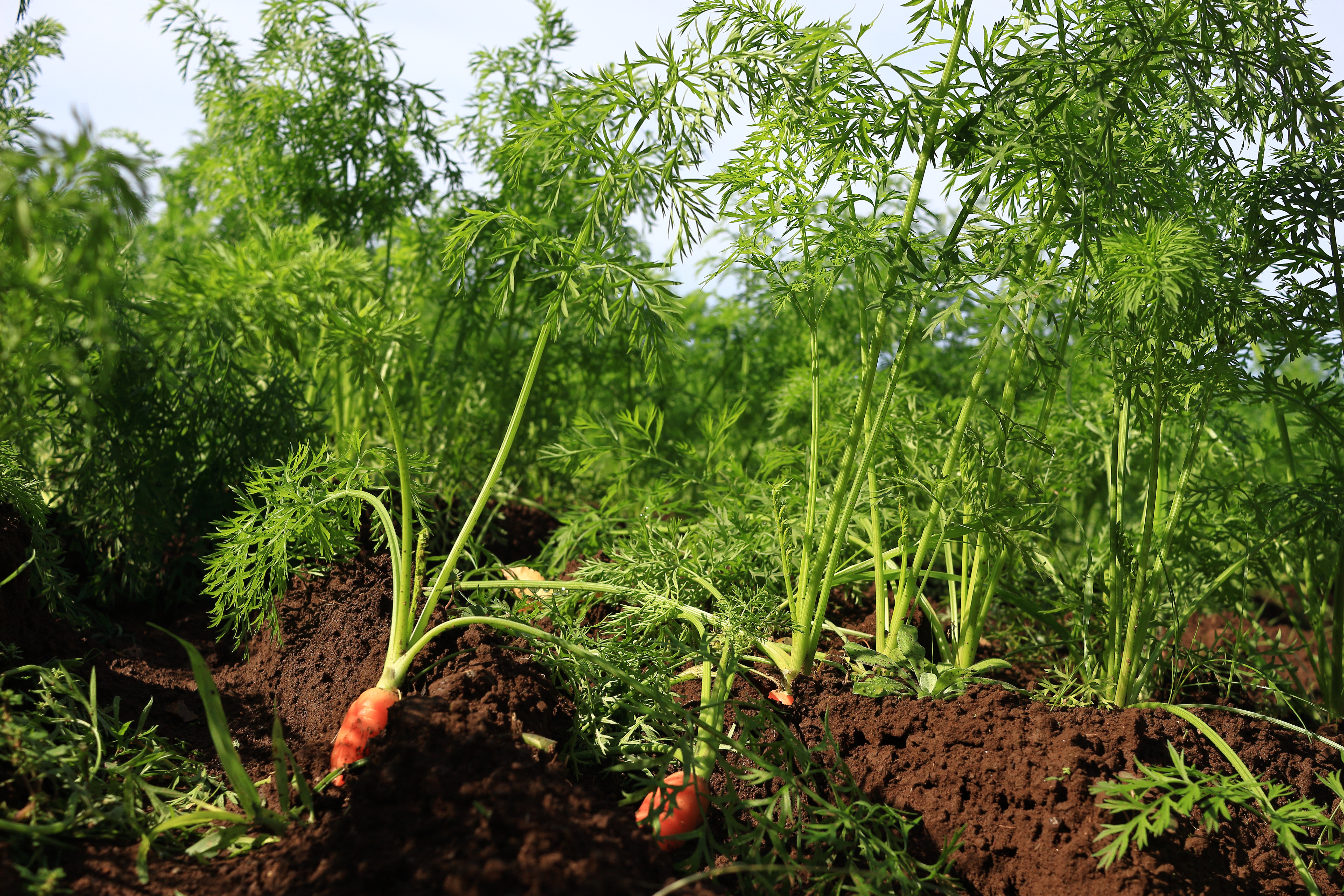 緑の葉がまぶしく揺れるニンジン畑では、オーガニックな有機栽培によって丁寧に育てられたにんじんが、豊かな土壌の中で元気に成長しています。葉の緑が畑一面に広がり、その美しい景色は見ているだけで癒しとリフレッシュを感じさせます。収穫を待つ農作物としてのにんじんは、健康や栄養に優れた食料となり、農業の営みの尊さを感じさせる穏やかな風景が広がっています。