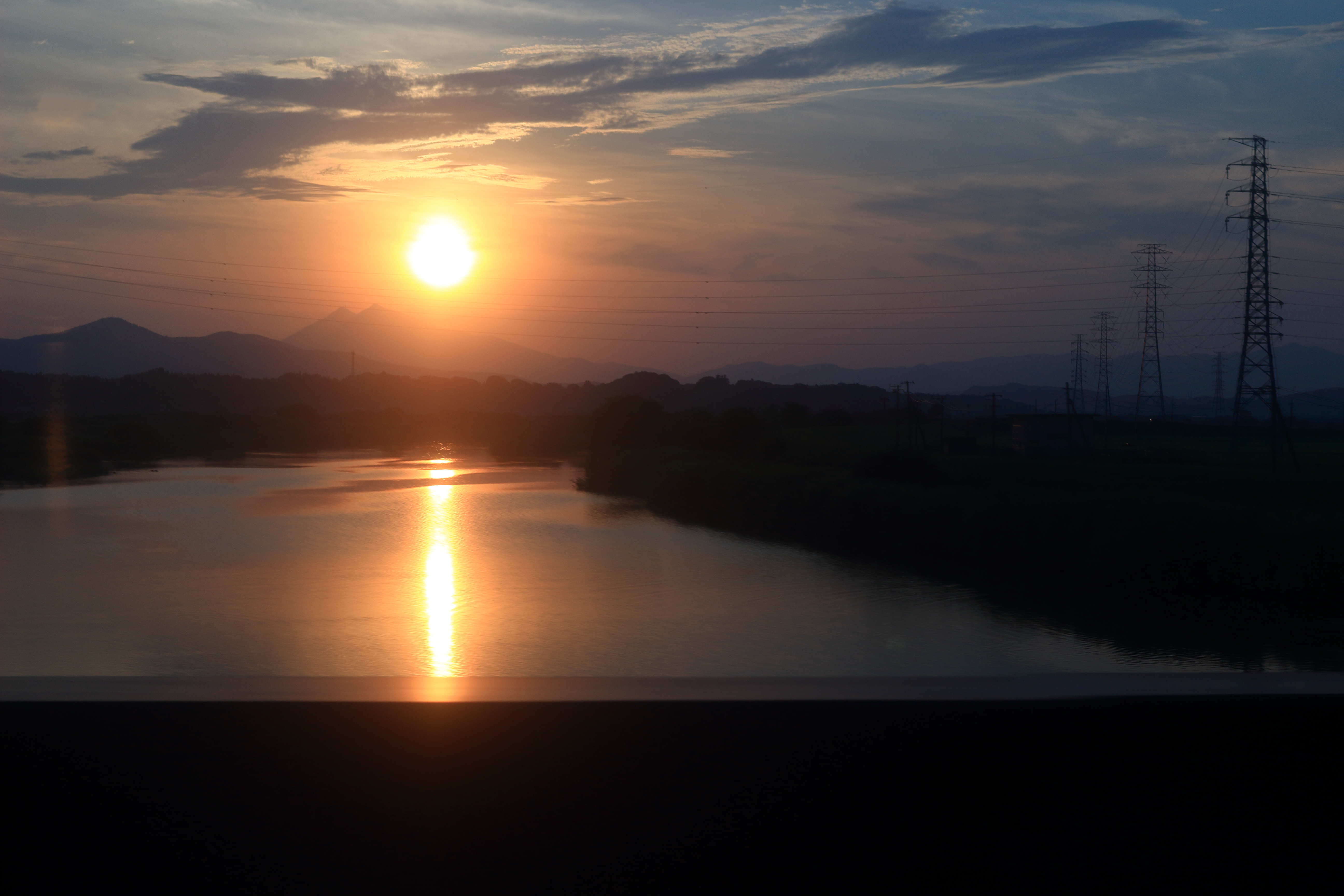 列車の車窓から眺めた夕景を切り取った写真です。帰路につく時間帯、湖の水面に映るオレンジ色の空がゆっくりと流れ、鉄道の揺れとともに景色が移ろっていきます。旅の終わりに感じる少しの寂しさや充足感が重なり、心に残る思い出として静かに刻まれていく様子が伝わってきます。長めの時間をかけて眺めたくなる、穏やかで感傷的な雰囲気の一枚です。