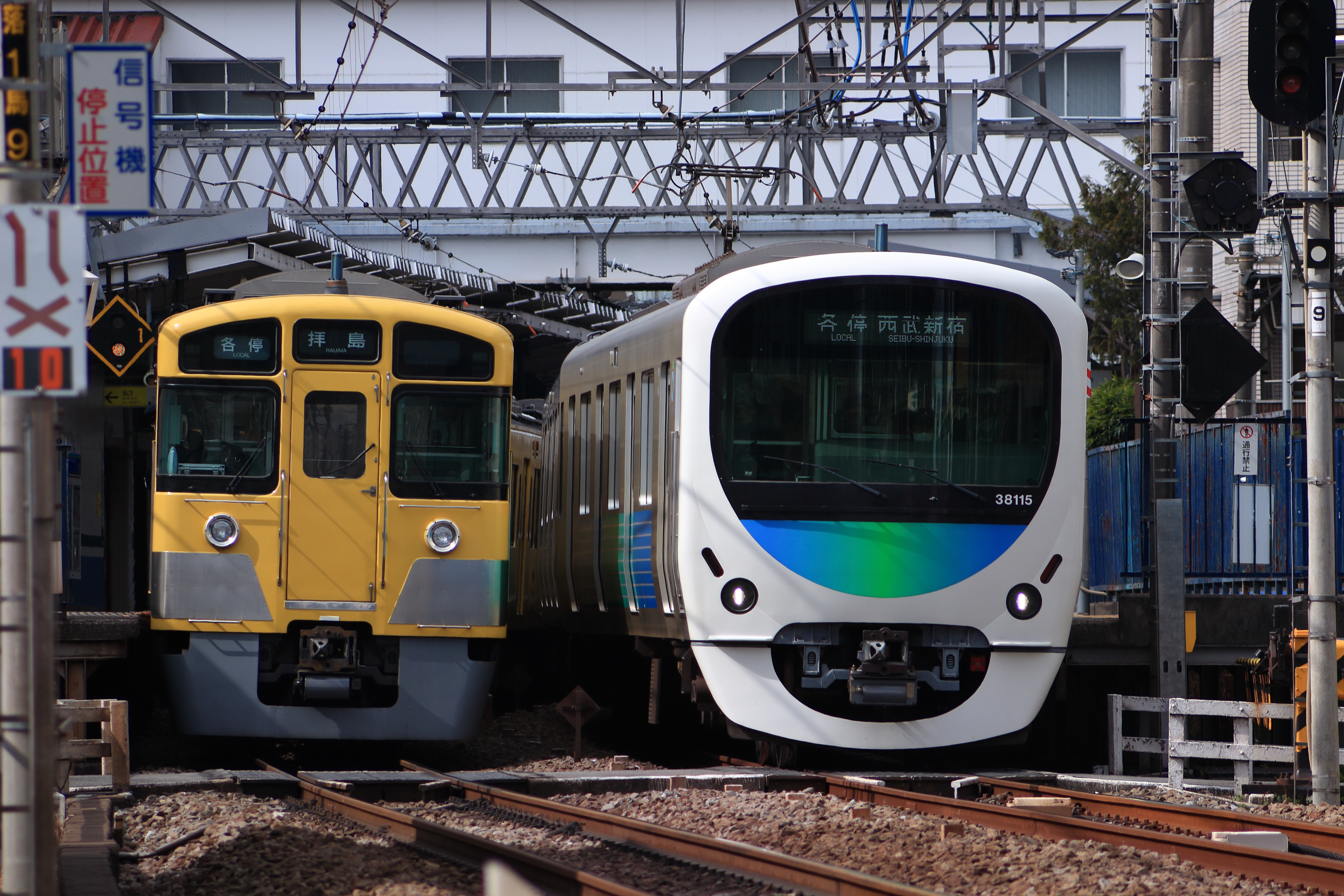 西武新宿線の駅に到着する通勤電車の様子です。朝夕の往来が多く、都市で生活する人々にとって便利な交通手段です。沿線には住宅街が広がり、日々の暮らしを支える重要な路線となっています。整然とした駅舎と人流から、都会のリズムと生活の息遣いが感じられます。